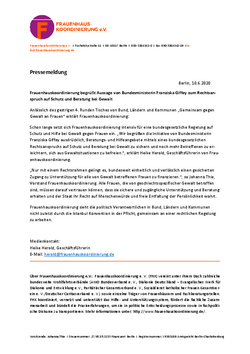 Schon lange setzt sich Frauenhauskoordinierung intensiv für eine bundesgesetzliche Regelung auf Schutz und Hilfe bei Gewalt gegen Frauen ein. „Wir begrüßen die Initiative von Bundesministerin Franziska Giffey ausdrücklich, Beratungs- und Hilfeangebote mittels eines bundesgesetzlichen Rechtsanspruchs auf Schutz und Beratung bei Gewalt zu sichern und noch mehr Betroffenen zu erleichtern, sich aus Gewaltsituationen zu befreien“, erklärt Heike Herold, Geschäftsführerin von Frauenhauskoordinierung.