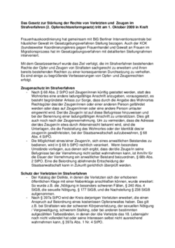 Kurze Rechtsinformation von FHK e.V. zum Gesetz zur Stärkung der Rechte von Verletzten und Zeugen im Strafverfahren, das am 1. Oktober 2009 in Kraft tritt.