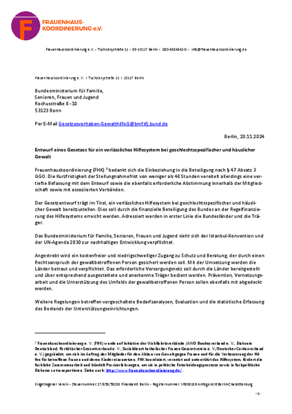 FHK begrüßt den vorgelegten Entwurf trotz einiger Verbesserungsbedarfe ausdrücklich. Dieses Gesetz muss verabschiedet werden. Ein längeres Zuwarten oder ein Verschieben in die nächste Legislatur ist unbedingt zu verhindern.