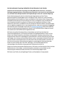 Am Internationalen Frauentag: Solidarität mit den Menschen in der Ukraine Anlässlich des Internationalen Frauentags am 8. März 2022 sprechen 41 Frauen- und weitere Nichtregierungsorganisationen in…