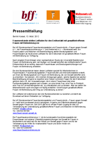 Pressemitteilung Berlin/ Kassel, 13. März 2012 Frauenverbände stellen Leitfaden für den Erstkontakt mit gewaltbetroffenen Frauen mit Behinderung vor Der bff: Bundesverband Frauenberatungsstellen und…