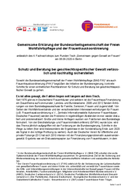 Gemeinsame Erklärung der Bundesarbeitsgemeinschaft der Freien Wohlfahrtspflege und der Frauenhauskoordinierung anlässlich des 4. Fachworkshops zum Runden Tisch „Gemeinsam gegen Gewalt an Frauen“ am…